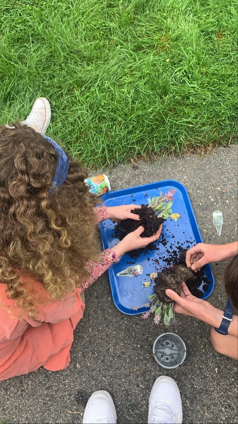 Here are me and a group mate separating soil from kale roots to prepare it to be planted in “Martian” soil for an experiment.